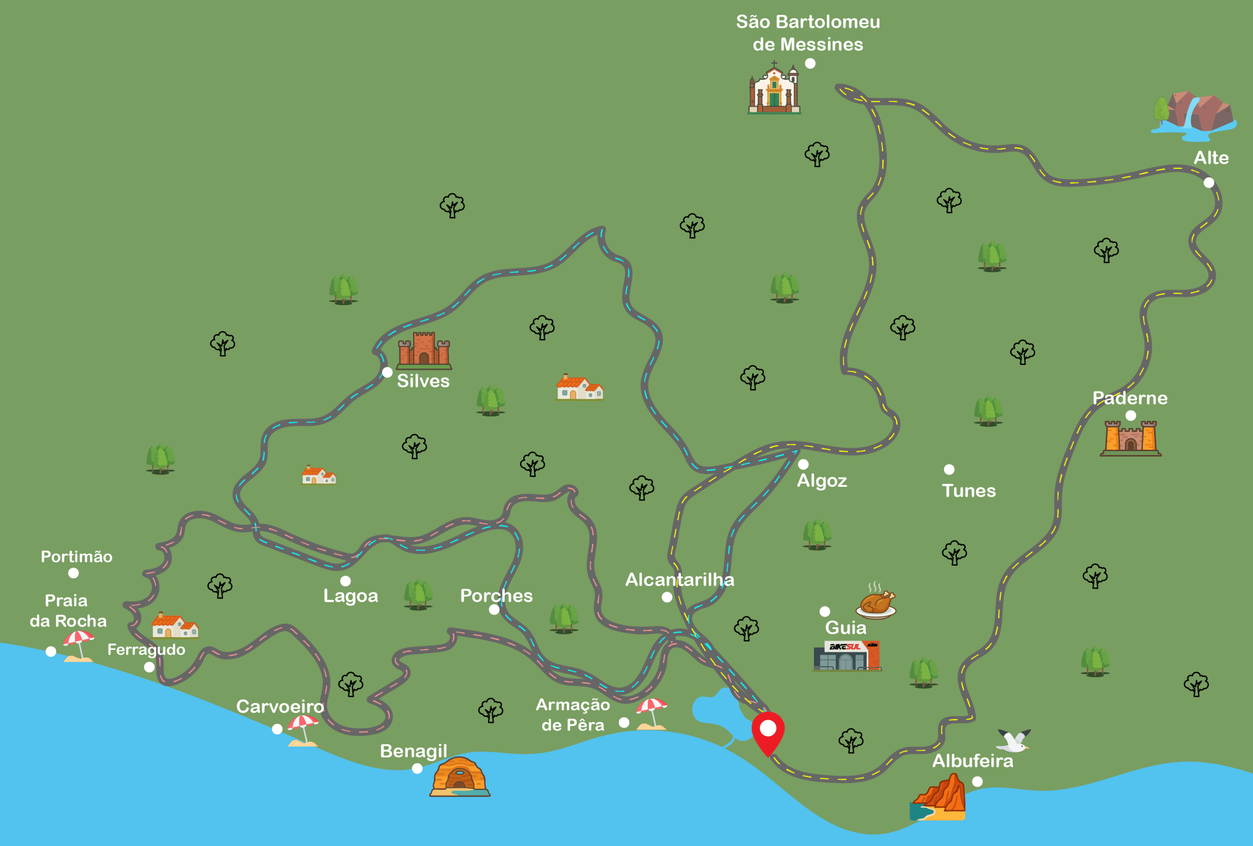 This routes includes the climb to the most iconic place in Algarve, Foía. It's the highest peak of the Algarve over 900m. On the way you will pass by Silves, with its imponent medieval castle, was the first capital of the Algarve.