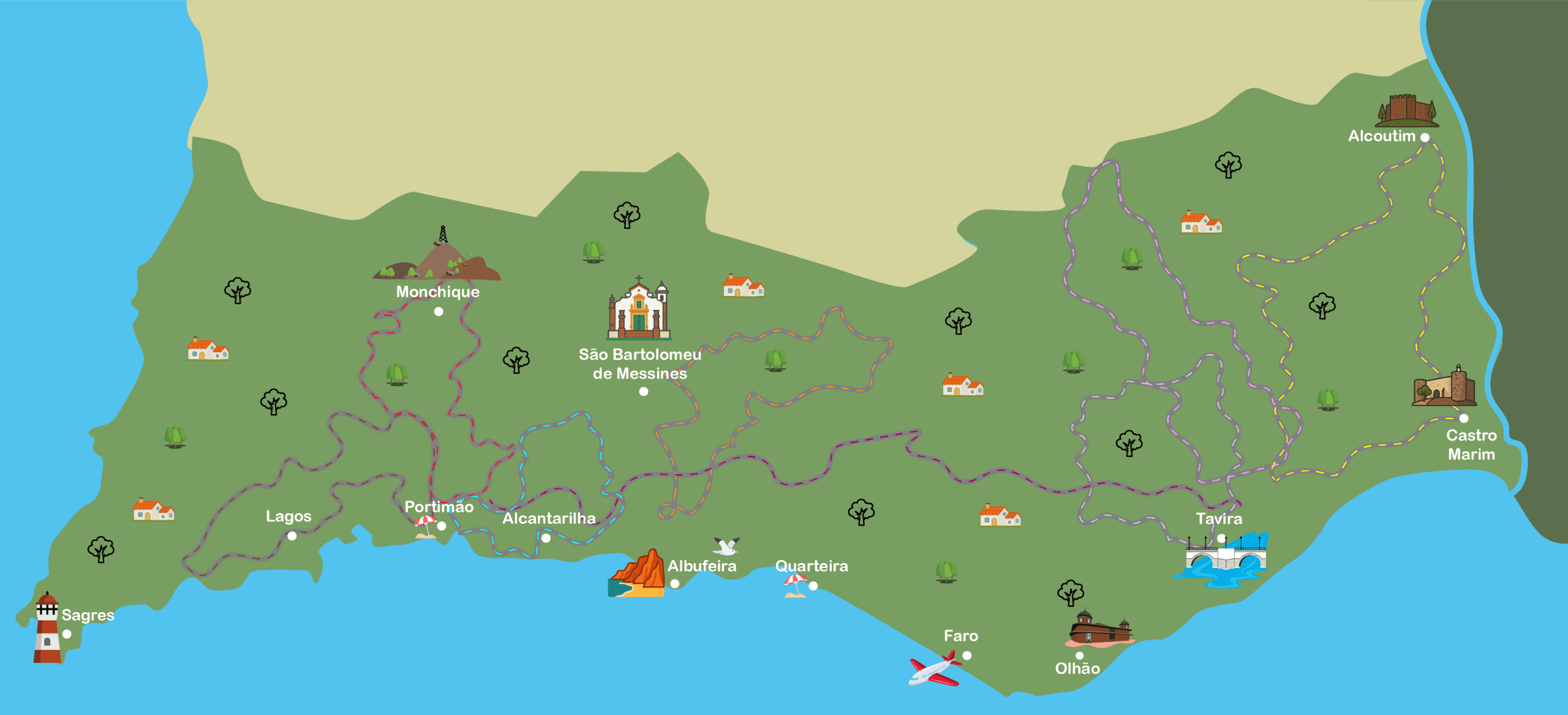 On this day, a large part of the "Serra de Tavira" will be covered. A demanding route, through low traffic roads, where you can enjoy the peaceful and green landscape of the Algarve's interior. This route will pass through small towns in the mountains, such as Umbrias de Camacho, Alcaria do Cume and Malhada do Judeu, which preserve the authenticity of the times when the countryside was lived.